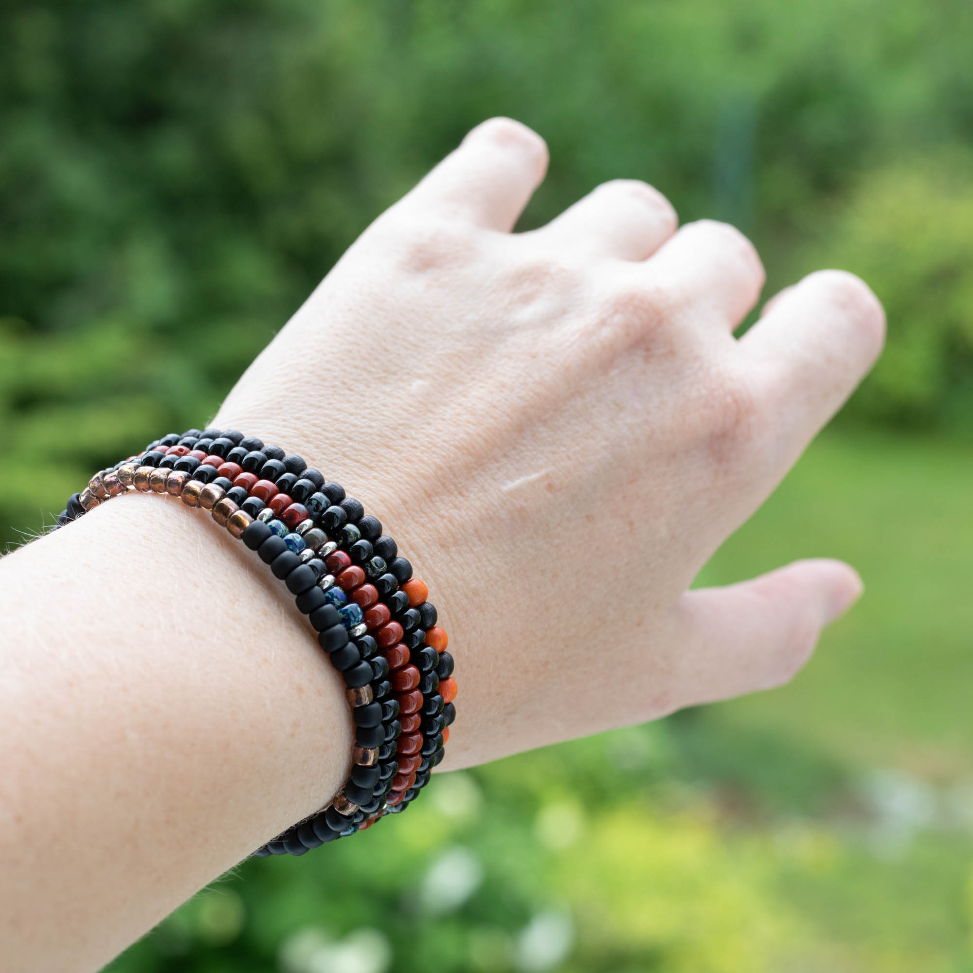 Bracelets of various styles suitable for both boys and girls. They are made of smaller beads of semi-precious stones, wood or seed beads with the possibility of using various pendants.