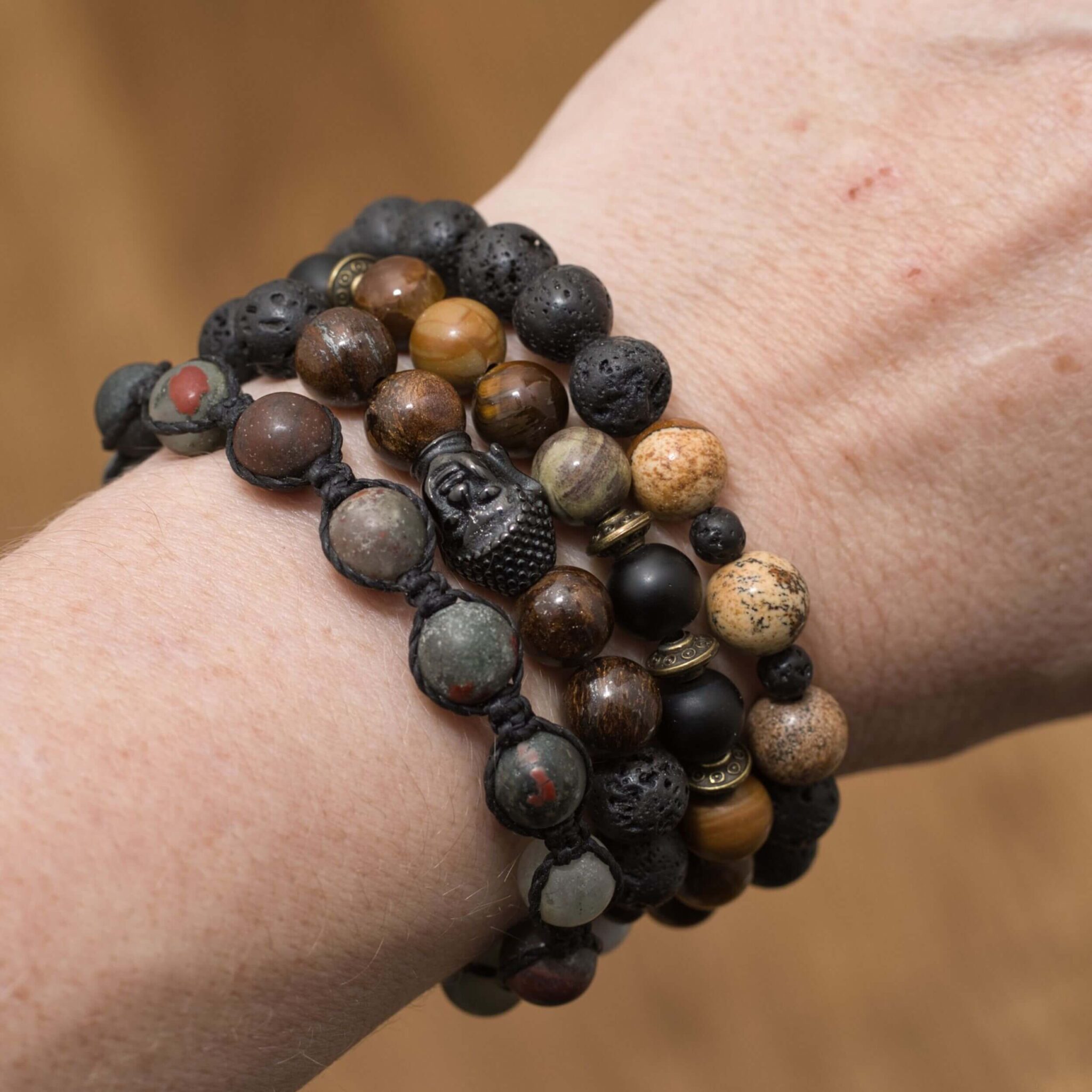 Gemeinsam symbolisieren sie Balance, Gelassenheit und innere Stärke. Die natürlichen Farbnuancen verleihen dem Armband einen warmen, eleganten Charakter – ein ausdrucksstarkes Accessoire für jeden Tag.Wählen Sie die Größe nach dem genauen Handgelenkumfang ohne Zugabe von Reserve.