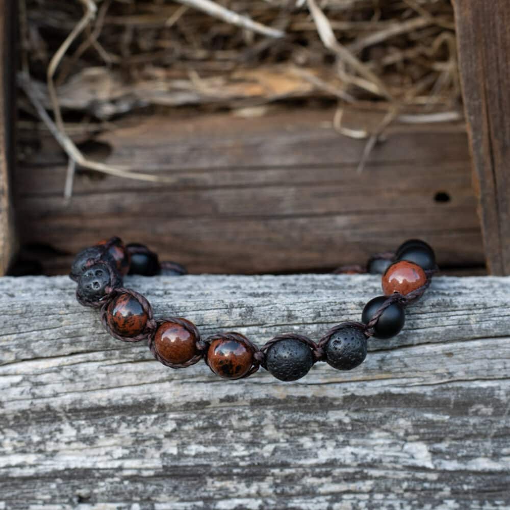 Dieses Shamballa-Armband in Schwarz- und Brauntönen wird aus Lava-, Onyx- und Mahagoni-Obsidian-Perlen gefertigt. Die Perlen sind auf einem schokoladenbraunen, gewachsten Polyesterband aufgereiht und das Armband ist mit einem verstellbaren Schiebeknoten versehen, der an den Enden mit zwei Steinperlen abschließt. Es vereint natürliche Edelstein-Optik mit zeitgemäßem Stil und eignet sich sowohl für den Alltag als auch für besondere Anlässe.